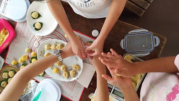 確實如此,從每個孩子做月餅的過程,他們會觀察、學著探索、小心翼翼的做好每個步驟,非常可愛,爸媽們則從旁鼓勵、協助孩子們,然後告訴他們:每一個都好美好美哦!這些過程,都強化了每個孩子的精神能量。