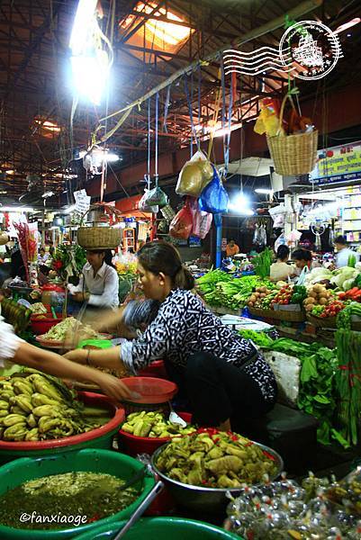 來到這裡可以看到有些菜販高聲叫賣、也有幾個女人蹲在一旁宰雞、殺魚,還有蹬著高跟鞋、穿著時尚的女人提著菜籃來市場買菜,也有小朋友在市場裡跑來跑去,還有一群人就在肉販旁的小吃攤津津有味的吃起河粉湯,外國的觀光客則是拿起相機猛拍照,各式各樣的人,都在這裡,看見了高棉人最真實的生活。