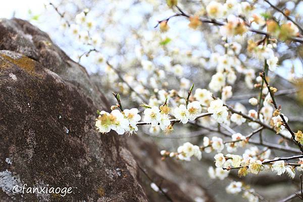 走在梅樹下,偶一碰觸樹枝,白色花瓣自天飄降,似雪似花、非雪非花,就像古人所言:「砌下落梅如雪亂,拂了一身還滿」的詞意,梅花樹下,充滿了詩情畫意。