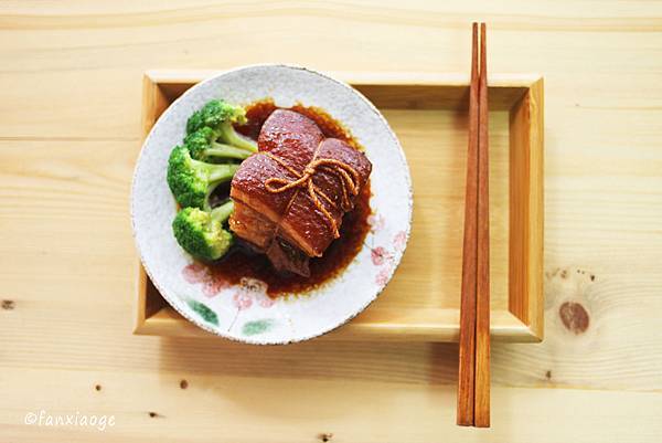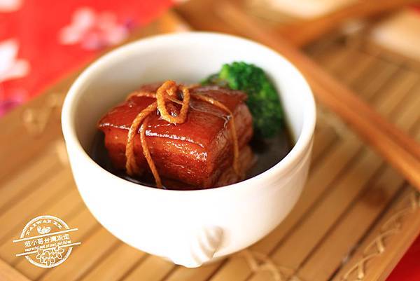 用紹興酒、冰糖、醬油、薑片依照比例慢火熬燉2個小時,然後再悶上2個小時,這個悶的工夫是關鍵之處,使之入味、使之軟綿。