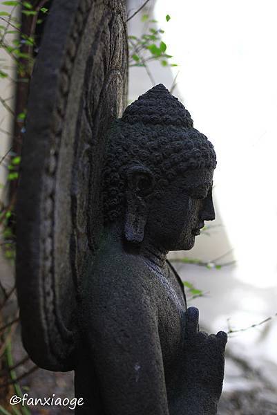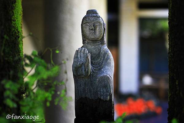 梅樹、流水、石像;禪風溢、薰香吹、鐘聲繞,