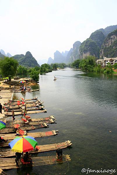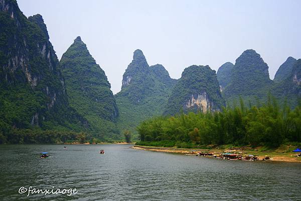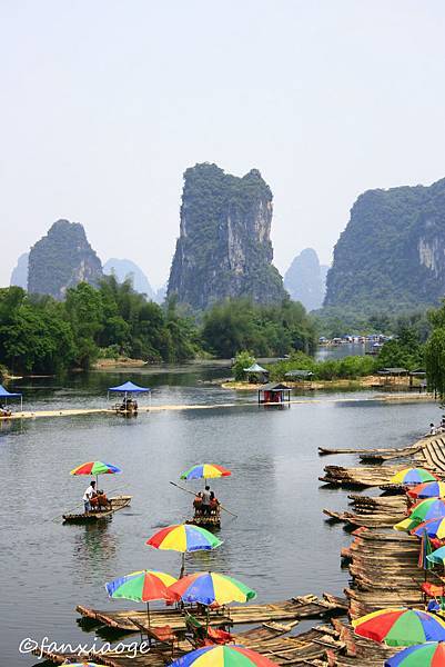 桂林漓江風景區以桂林市為中心,北起興安靈渠、南至陽朔,由漓江一水相連,沿途奇山、綠水、人家相連,融合自然與人類生活的景致,平房、小船、水牛、鴨子,這些看似平凡的景象、卻交織桂林樸質的一面,讓人迷戀亦不已。