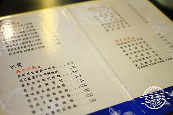 看看菜單,有小點、前菜、烤餅、義大利麵、焗烤等等,聽說烤餅是招牌啊!一定要點!
