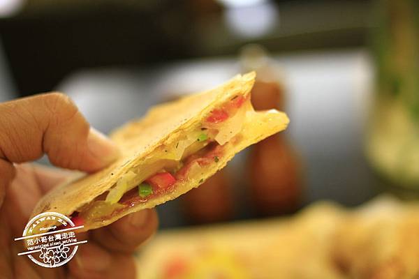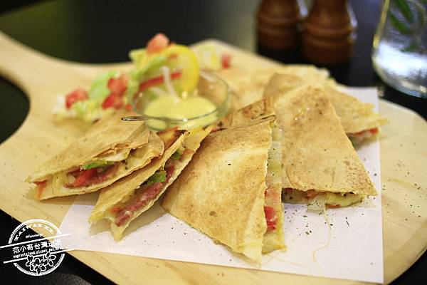 墨西哥餅皮夾入切達起司和新鮮時蔬,醬汁調得恰到好處,沾上特調醬料好吃!