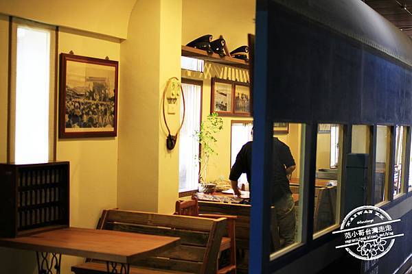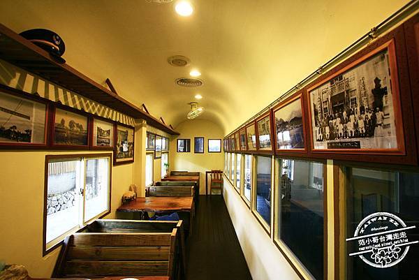 旁邊有個仿古車廂,牆上掛著許多老照片,年代從日治時期到光復後,都是集集的老時光,非常珍貴!