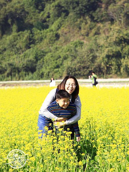 花海拍人物真的很好拍,母子兩笑得真開心!