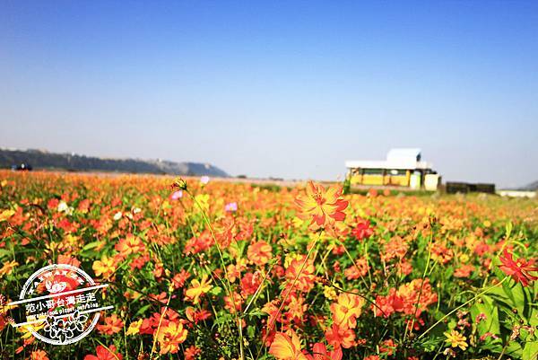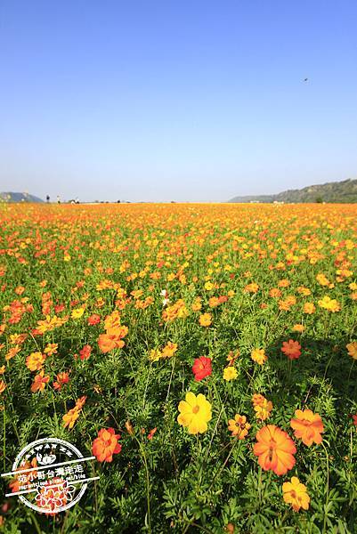 橘色的波斯菊和藍色天空,這種搭配真的很吸睛啊!