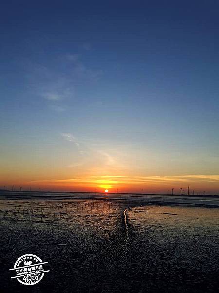 有次開車奔馳於濱海公路上,匆忙於文字堆裡與截稿的壓力之中,我也是夾雜於名叫”生活”的歷史洪流裡,奮力向前;但是,似乎那片海洋願意為我停留,斗大的落日,就在那列車鐵軌之間、風車與細沙的映照裡,我下了公路隨意行走海濱小道,覓得一處沙灘,天空的深處,是暗藍與深紫的潑墨,在往下落日分享了它的光明,為雲彩增添了亮度與彩度,波光與海浪跳起曼波舞,好美啊!