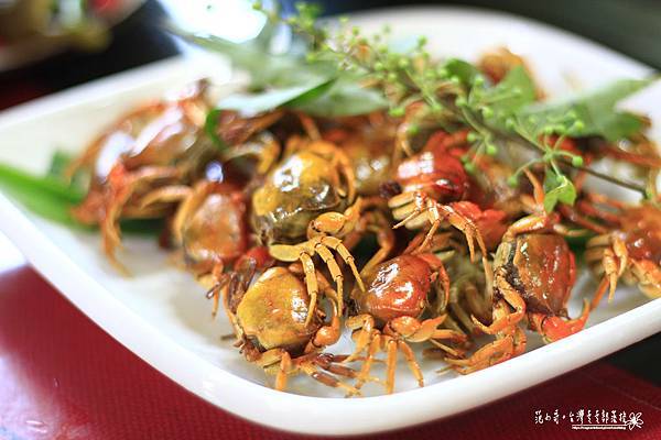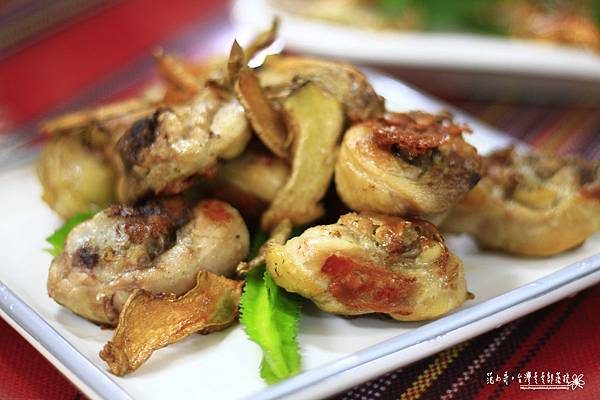 ・山產:酥炸溪蝦、溪魚、螃蟹:魚、蝦、螃蟹都是部落附近水域的水產,酥炸過後在灑上胡椒就是伊道具有地方特色的料理,非常酥脆!