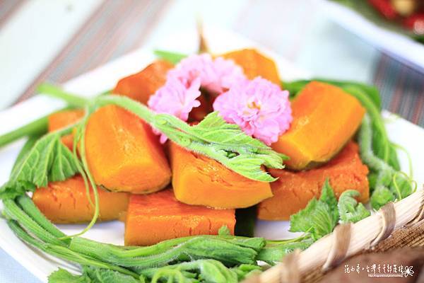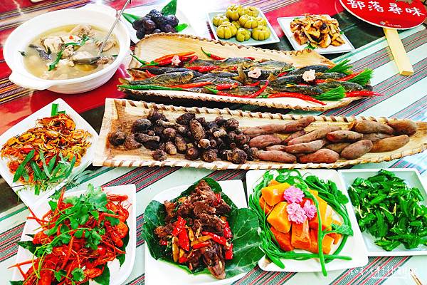・蔬菜類:蒸南瓜、蒸樹薯、段木香菇、車輪苦瓜、山苦瓜、佛手瓜、梅醬龍鬚菜,都是採自部落的新鮮蔬菜!非常新鮮喔!