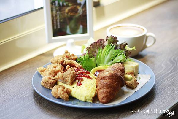 唐揚雞歐姆蛋同樣也是豐盛可口,外酥內嫩的唐揚雞,搭配滑嫩的歐姆蛋、生菜、烤可頌,吃了幸福感十足!