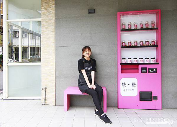 值得一提的是,柒.柒還有一大特色,就是兩面傳說中的網紅打卡牆,一面是門口的木造窗櫺與灰色牆面,加上柒.柒兩個字構成了非常文青的畫面;另外就是後門的"粉紅販賣機",是柒.柒的一大亮點!