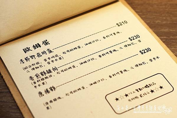 備註:內用低消100元、用餐時間90分鐘、最後點餐14:30