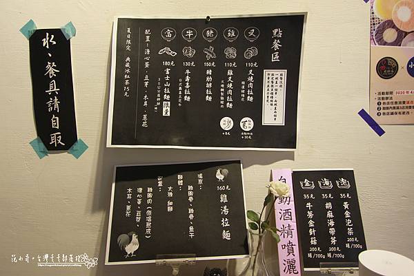 店裡的餐飲其實很簡單,有拉麵與小菜兩種,價格都非常親民,最貴的富士山拉麵(限量)也才180元,最便宜的是叉燒肉拉麵110元,至於小菜都是35元,夏天還有典藏的冰紅茶!