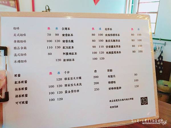 小林陳舍的菜單很簡單,就咖啡、茶、花草茶、歐雷、手沖咖啡與甜點,價格一般,跟星巴克差不多。