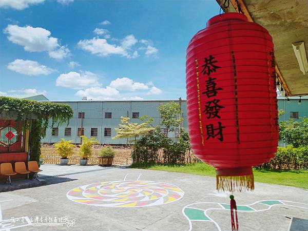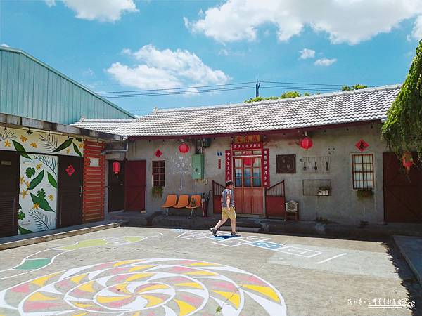 來到前庭,也就是台灣俗話說的"門口庭",地上畫著跳格子的圖案,如果是五、六年級的朋友相信一定不陌生,在那個沒有手機的年代,跳房子、踢罐子是小時後最有趣的遊戲了!