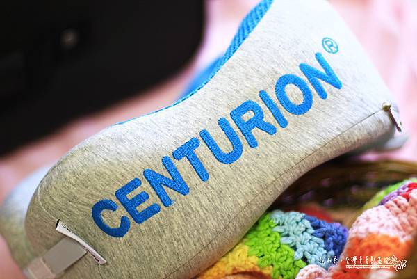 百夫長CENTURION旅行箱頸枕的Logo,雖然說很少人會將LOGO作成商品的主視覺,但是這樣的搭配其實也不違和,蠻好看的!