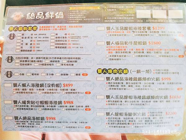 5、組合:海陸鍋$899、蝦蝦海陸鍋$988、海鮮鍋$998、龍蝦海陸套餐$1299、和牛龍蝦鍋$1800