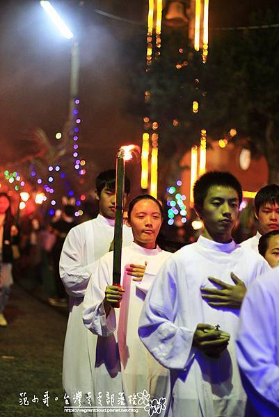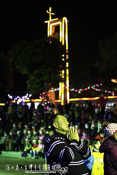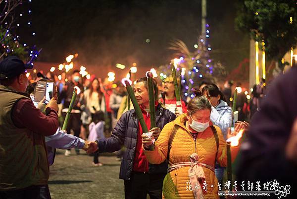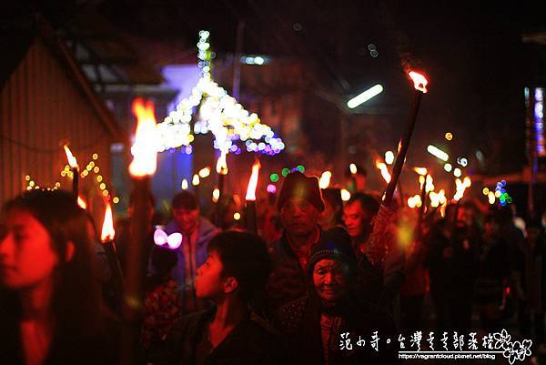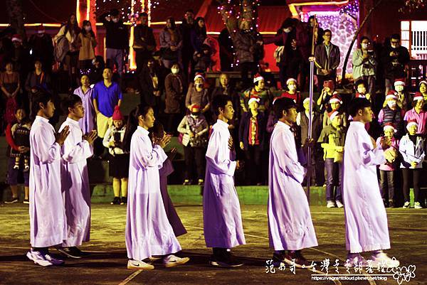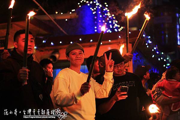 六點半一到族人與遊客紛紛點亮火把踩街報佳音,,村民與遊客們開心互道"聖誕快樂"!一大群人在前導車與神父的的引領下,從天主堂出發,延著開信巷繞村子一周,非常熱鬧!最後回到天主堂進行彌撒,最後是熱鬧與令人讚嘆的演出!