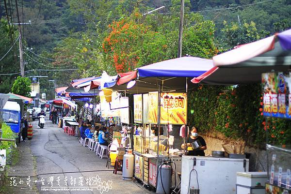 平安夜當天下午,太陽才剛西下,地利村的燈火逐漸點亮,不時有五光十色煙火綻放、點亮山區的天空。故事牆還有夜市攤位,可以讓遊客邊吃邊逛!