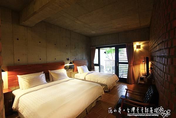 這次范小哥我住的就是春光,弧面紅磚牆增加了視覺的展延,深色的岩石地板讓整體空間更加沉穩,原木元素讓空間多了溫度;打開落地窗,眼前就是後壁湖的景致,坐在藤椅上,享受這寧靜而緩慢的時光!