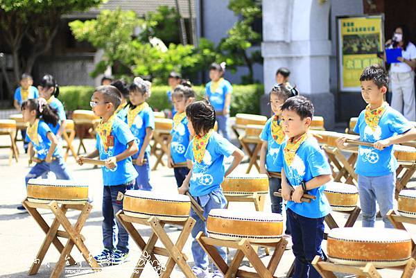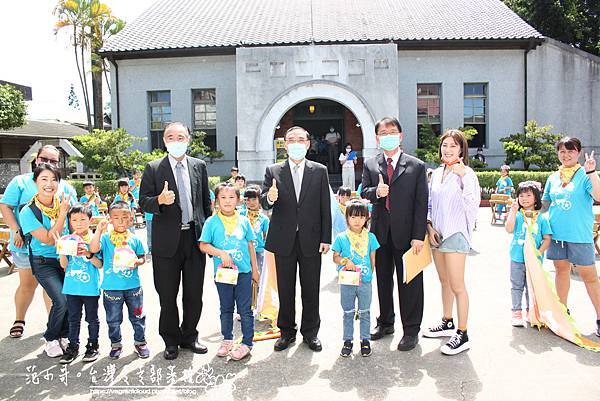 (法務部長蔡清祥等人與幼兒園孩子合影)
