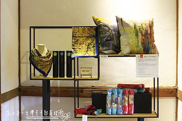 顧德莎老師曾經創作了許多油畫作品,腳印創意行銷取得授權開發成一系列的商品,包括雨傘、絲巾等等,非常獨樹一格。民眾可以到嘉義市立美術館的燃石小舖購買!