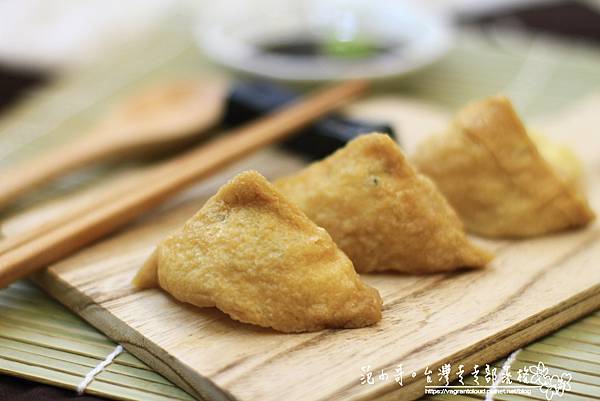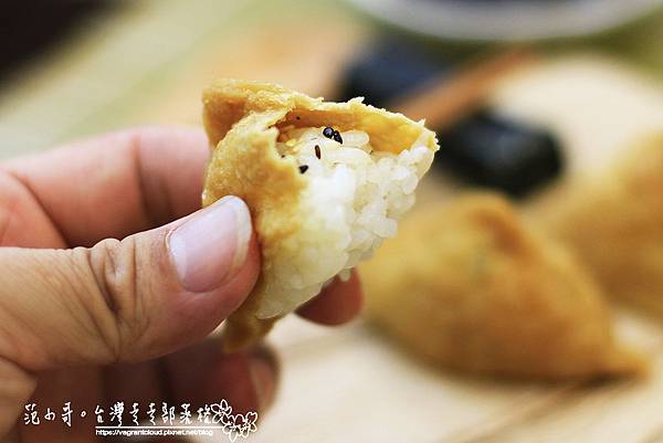 我喜歡豆皮,鹹鹹甜甜的,搭配粒粒分明的米飯,口感很不錯!