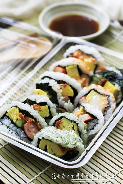有豆皮、德式香腸、龍蝦沙拉、海苔等等,一份7貫,一個人吃不嫌多!剛剛好!