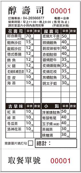 菜單的部分有花壽司、握壽司、古早味茶飲和小點,價格10~50元,算是平價喔!