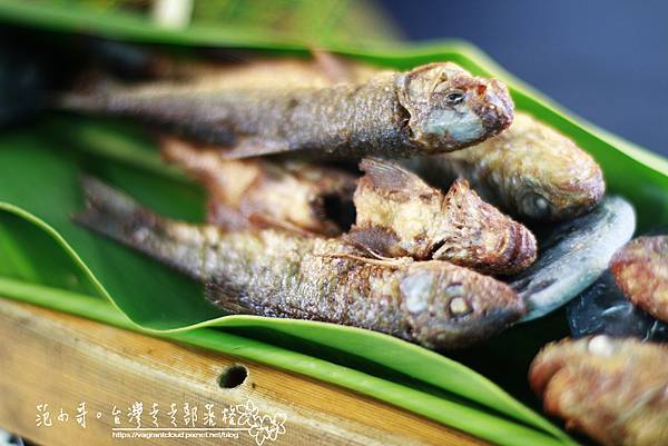 每年七、八月份的溪魚特別肥美,當天清晨就要到溪邊以垂釣方式釣魚,如果太小就要放回,每次也取足夠的量,以維持生態平衡;這道菜方茂貴的作法是先用馬告醃再酥炸,最後灑上香料,魚肉非常鮮甜好吃,這道菜可以說是山上特有的料理!