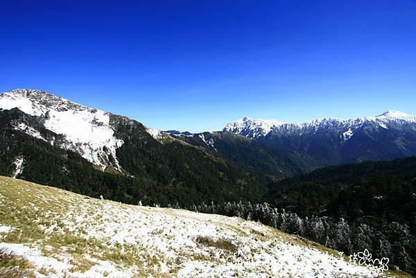 本週天氣放晴,可以看見藍天白雪的美麗景致喔!看著山脊佈滿白雪,充滿異國風情,而雪杉與鐵杉上還有許多霧松,美不勝收!