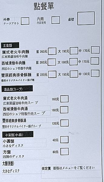 ※西域清燉牛肉麵。套餐260、大碗190、中碗170