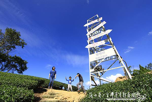 觀景台下方就是愛情塔,白色的鐵塔矗立在茶園中,還挺有一番風情的!
