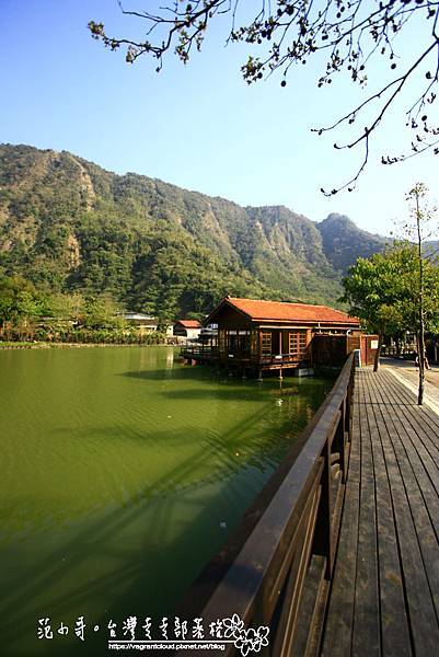 而木葉館旁就是貯木池和天車,天車就是起重機,把運送到這裡的木材吊起來放到杉木池,或裝到台車上送往工廠;而杉木池就是浸泡木材,讓樹脂流出的大水池,看著這些設備與設計完善的天車、杉木池,似乎可以想像,車埕當時那熱鬧與繁華的景象。