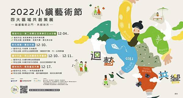 2022小鎮藝術節系列活動於12月4日於竹山小鎮揭開序幕。突破過去單一場域的活動模式,今年的小鎮藝術節結合南投竹山、雲林大林、台中中區、彰化埔鹽四個場域,以嘉年華式的活動形式,展現社造與地方創生華麗的成果。
