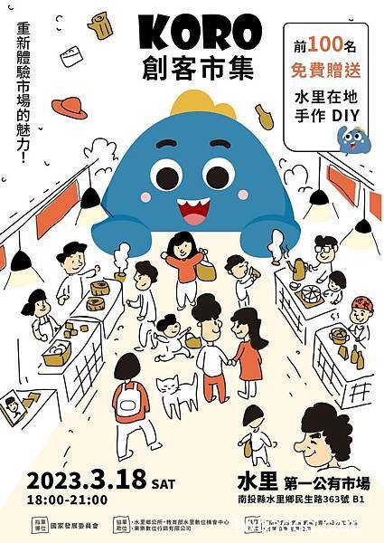 為了再現水里小台北的繁華、也希望能進一步活化菜市場的老舊空間,村落印象團隊於2023年3月18日(六)在已經荒廢十多年的水里公有市場地下室舉辦【KORO創客市集】,不僅吸引數百名居民與遊客參與,公共電視更專程前來拍攝製作專題節目,成功打響水里菜市場活化的第一步!