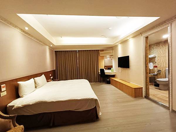 旅店其實設計的有溫馨感,空間格局採用暖色系,讓人有安定感!房間部分有雙人、三人,家庭房,這次我住的是設有按摩浴缸、原木烤箱的豪華雙人房,空間很大,我覺得蠻舒適的!雖然不是全新的旅店,但是乾淨舒適,是住宿的不錯選擇!