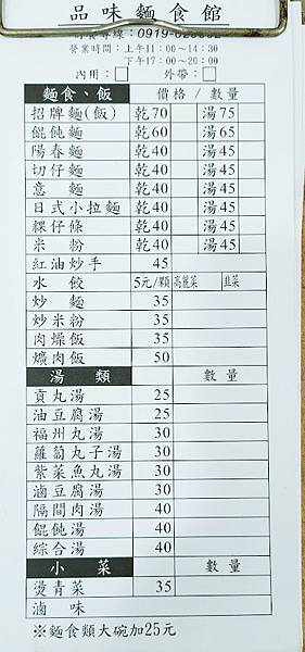 以前范小哥住在附近時就經常光顧;品味以麵食為主,搭配飯類、小菜、滷味以及水餃,選擇非常多樣。來看一下菜單吧!