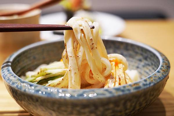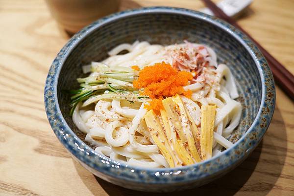 烏龍麵也是日式料理常見的主食,料理也很多樣,可以做湯麵、冷麵都好吃。而日漉的作法是加上胡麻醬佐半,那濃郁的香味與烏龍麵的Q彈真的讓人「溯」不停!