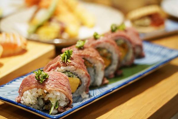 這道老闆特別推薦,使用choice無骨牛小排炙燒後捲上醋飯與玉子燒等食材,口感層次多元,牛肉的香味和玉子燒搭配相得益彰!