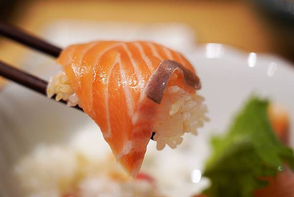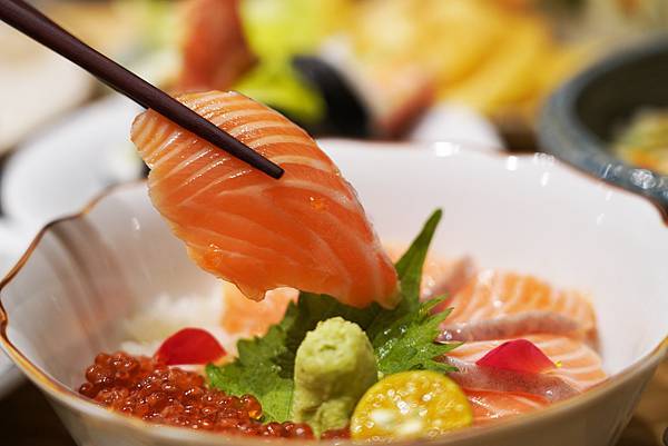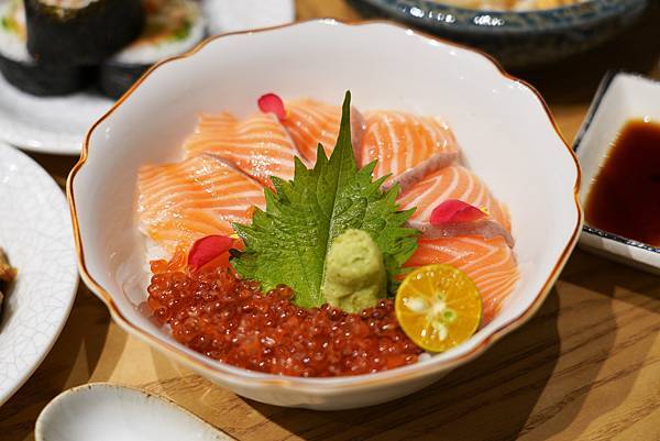 親子丼也超讚,鋪上滿滿的新鮮鮭魚看起來就讓人食指大動,嚴選挪威鮭魚,口感相當綿密細緻,加上鮭魚卵增加整體的豐富口感,這道點菜率蠻高的喔!