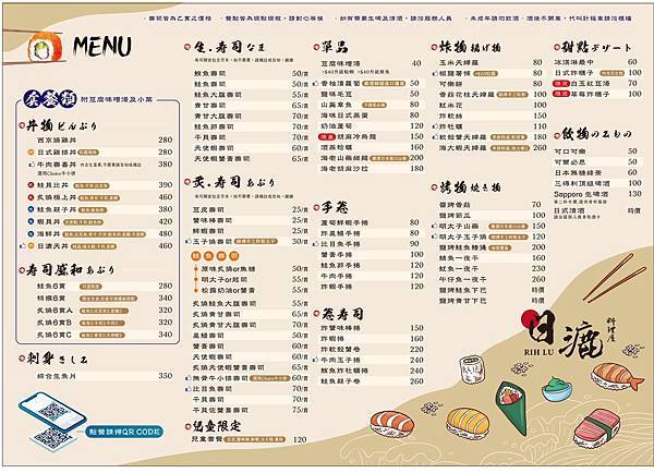 (日漉料理屋菜單)