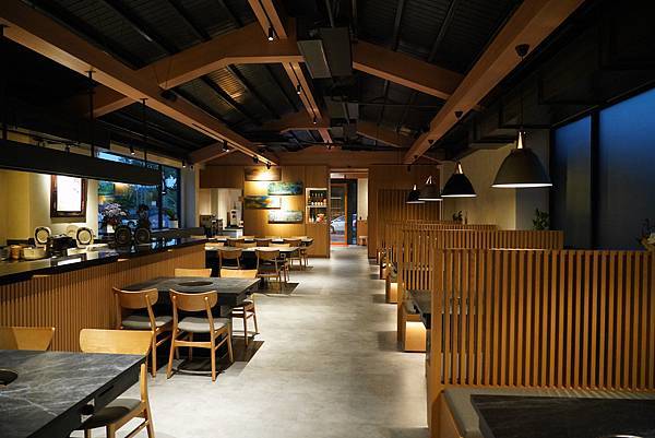 走進店裡,寬敞挑高的室內空間,也是採用一貫日式極簡風,暗色系為主基調,加上褐色木條隔板增加細緻度與暖色調,讓整個空間的質感提升不少!
