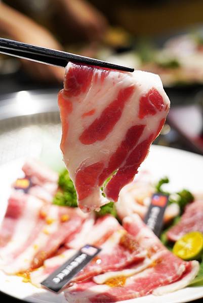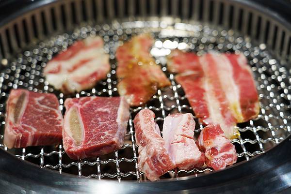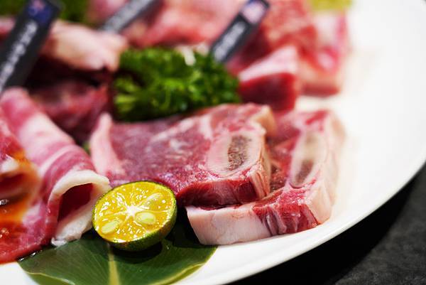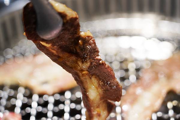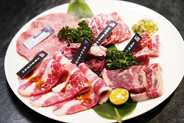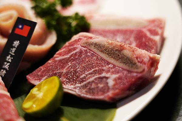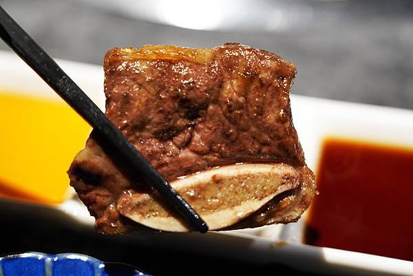 為了能讓客人同時吃到牛肉和豬肉,目黑全推牛x豬的套餐組合!除了上面有提到的伊比利豬之外,還搭配了美國特選胸腹肉(牛五花)及帶骨牛小排,那油亮亮、油花分布均勻的肉片,一看竟知道非常好吃!烤過之後細緻的肉質以及脂肪相得益彰,不僅香味與肉汁四溢,一入口那種肉香與絕佳口感,每一口都讓人意猶未盡啊!
