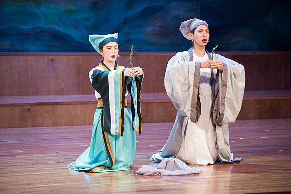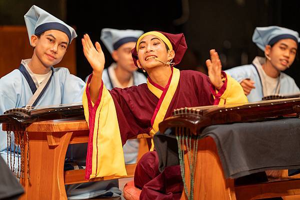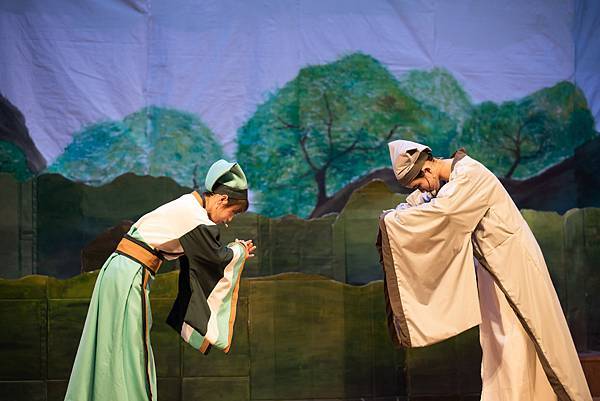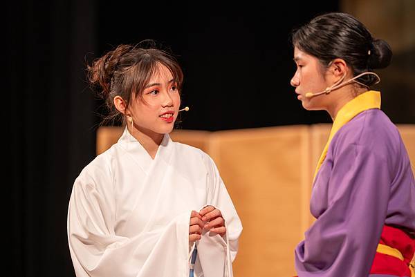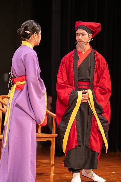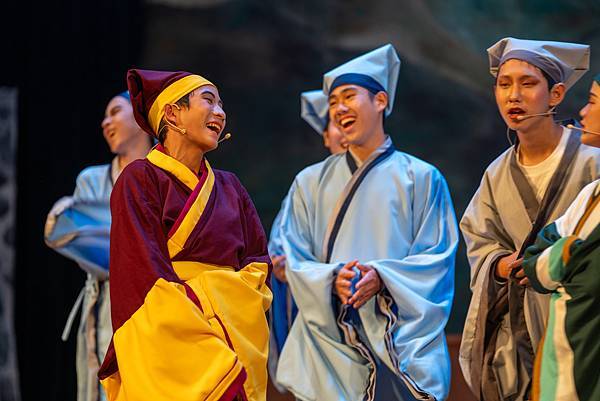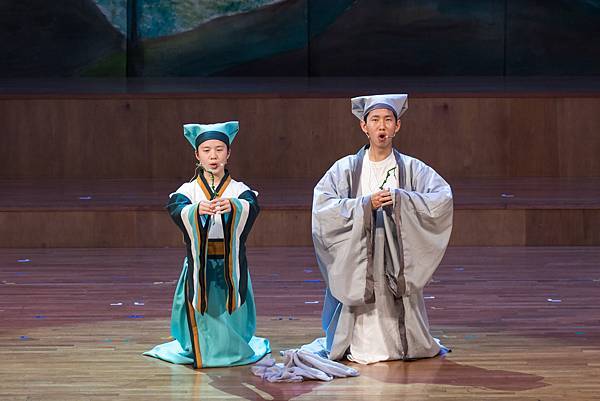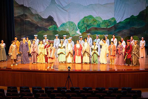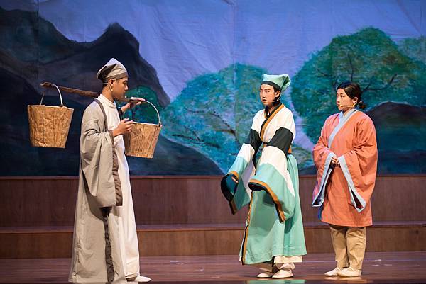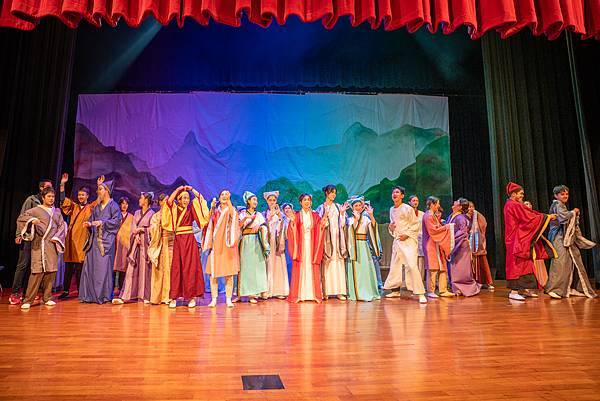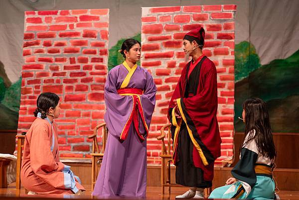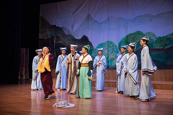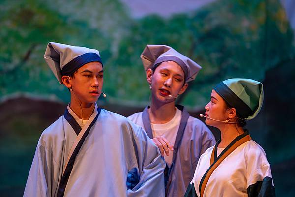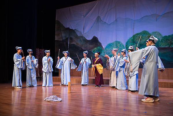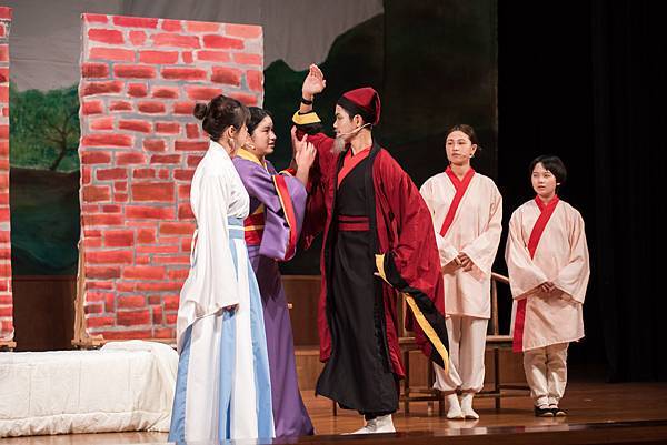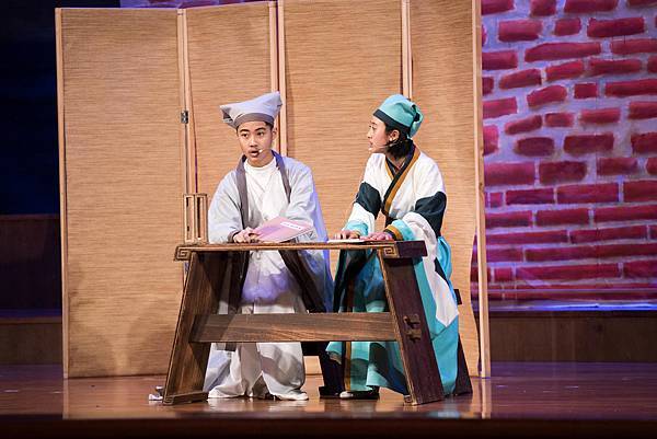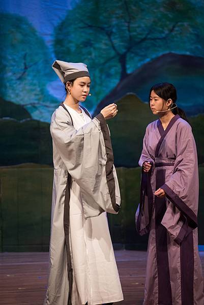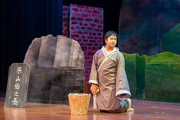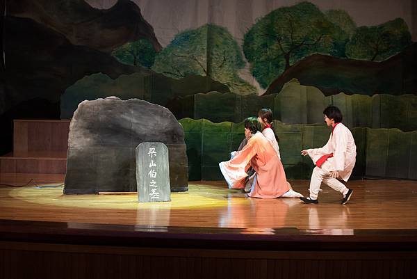 不過,這次的公演《蝴蝶戀人梁祝》做了些許改編,但不失梁祝深厚雋永的文學與意涵,更透過人物間的對話與互動,展現的嚴謹卻帶柔和與幽默,淒美中又帶決絕與篤實;才貌雙絕的英台,不甘時代框架而嚮往蝴蝶飛向寬闊的世界,不惜男扮女裝前往學院求學,結識了相知相惜的山伯,「同寢之誼」成為摯友,造就了後來可歌可泣的"十八相送"與"魂魄化彩蝶"的經典橋段!話不多說,來看看這群九年級丙申班與十年級乙未班孩子們精湛的演出吧!