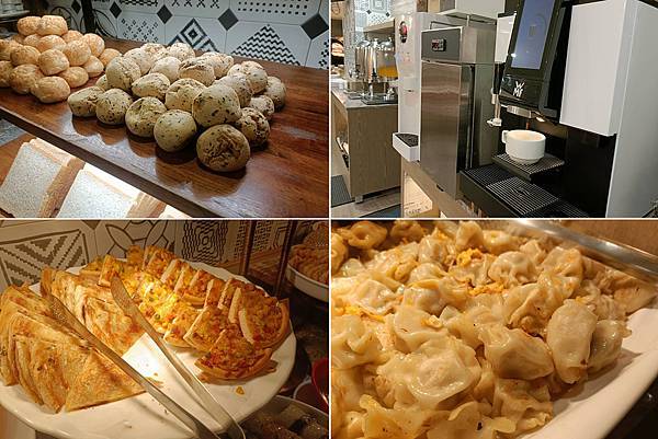 我們吃了清粥、雞肉飯、煎餃、烤蔬菜、烤雞翅、蔥油餅、烤吐司與小餐包,還有燒肉、湯品、各式蔬菜等等,搭配香醇的咖啡,讓人意猶未盡啊!