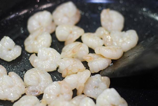 做法:蝦仁果漿稍微川燙備用,依照一般蛋炒飯步驟最後加上適量薑蔥魷魚醬(如果不想吃太油可以稍微濾掉油),最後加上蝦仁拌炒即可。