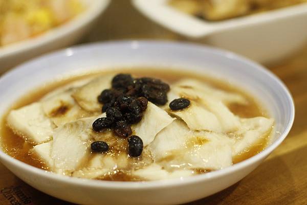這道蒸魚片搭配誠泰自家手工發酵的黑豆蔭豆豉,可說是鮮與醇的完美結合,豆豉粒粒分明,蒸煮後仍保有彈性與豆香,滲入魚肉纖維間,帶出溫和不搶味的鹹香風韻。