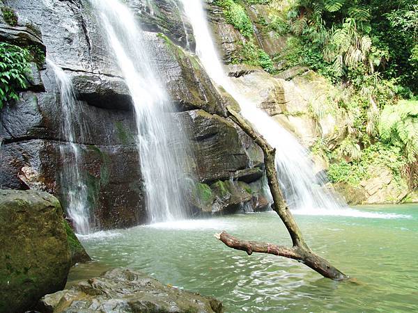 位於小半天竹林村的產業道路旁,從田尾巷進入,開車約15分鐘即可抵達。這座瀑布氣勢磅礡,水聲潺潺,分為上下兩層:上層水流緩緩滑落,沿著潭邊缺口傾瀉而下,轉瞬間化為湍急奔流,展現出強烈對比卻又渾然天成的和諧之美。